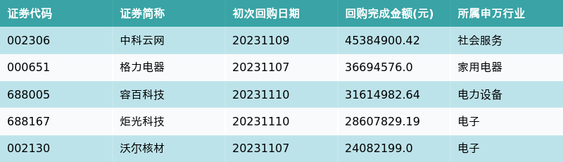 上周共有24条开始执行回购公告,其中执行金额最多的5条公告为: