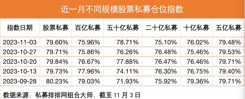 值得一提的是,大规模私募率先加仓,截至11月3日,五十亿规模私募仓位创出年内新高。
