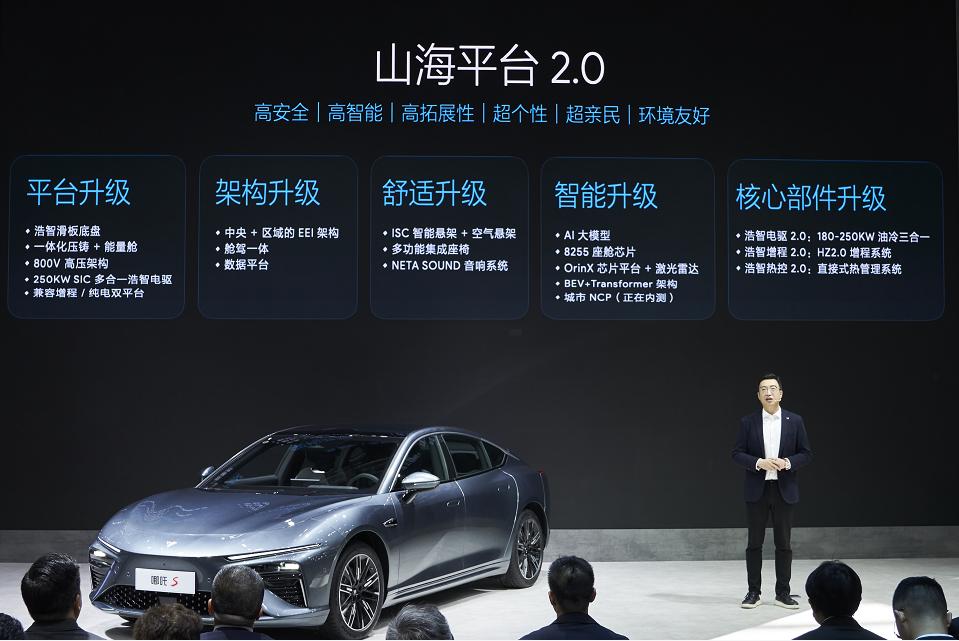 一个月后,广州车展开幕首日,哪吒汽车山海平台2.0正式发布,并披露多项技术成果,哪吒在宣布“转型技术公司”“2026年销百万”的目标后首次迈步。