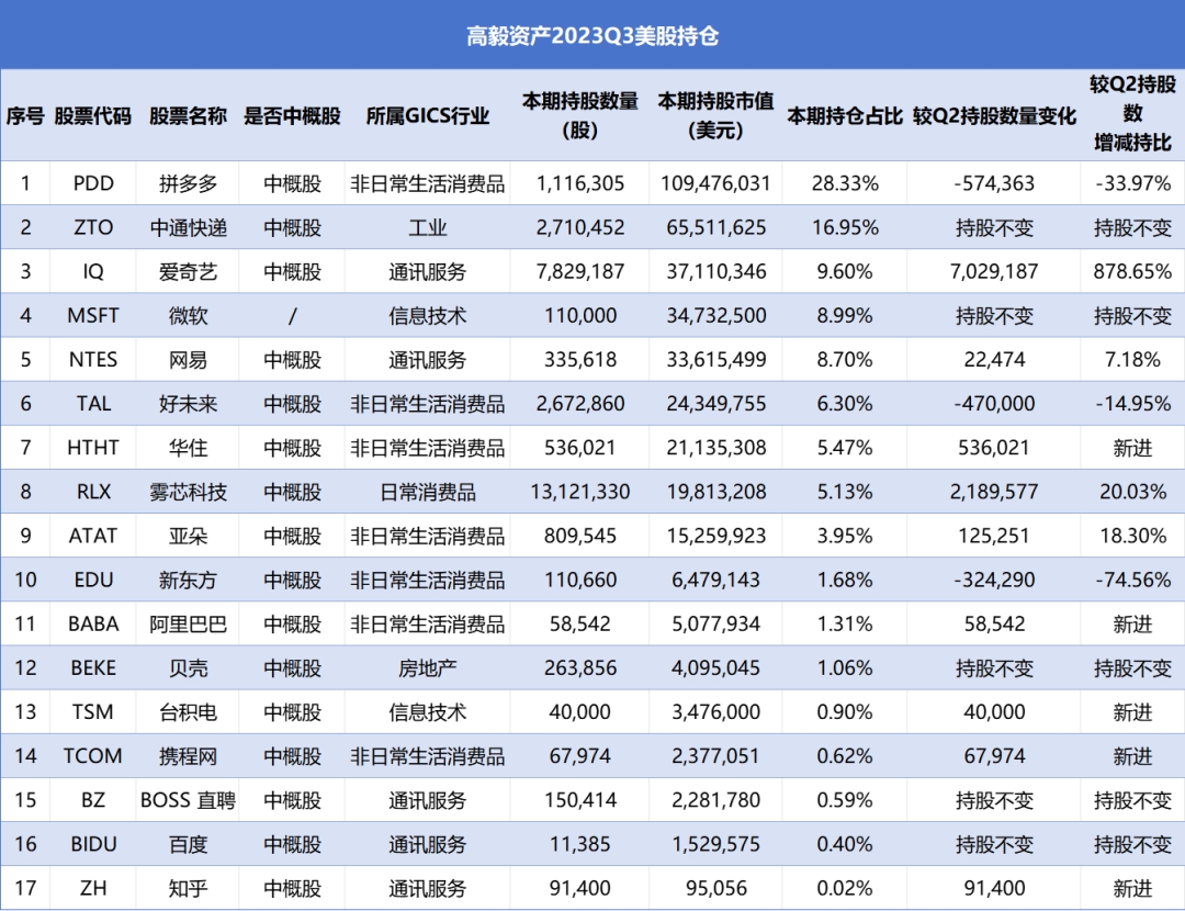 近日,美国证券交易委员会(SEC)网站显示,高毅资产、HHLR(高瓴旗下独立二级市场基金管理人)、景林资产和千合资本旗下对冲基金TOP ACE,陆续披露了截至三季度末的美股持仓。