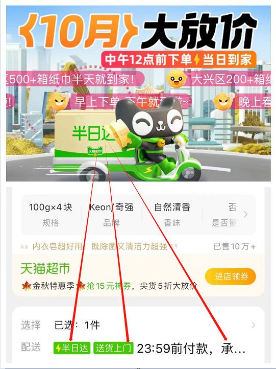 试想一下,中小商家若是在当日达、次晨达、次日达、半日达等众多快递服务产品中,选择了半日达,那么其货品配送时效上的优势,必定会成为商家的重要卖点之一。