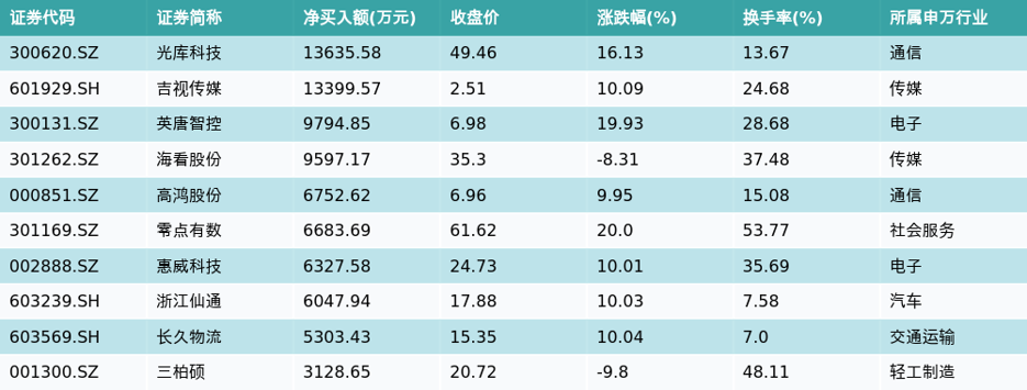 11月27日龙虎榜营业部净买入额前10详情见下表: