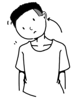 肩膀放松下沉,头部缓慢地向右侧肩膀倾斜同时保持5秒,然后回到中位,再向左肩侧倾,动作缓慢进行。