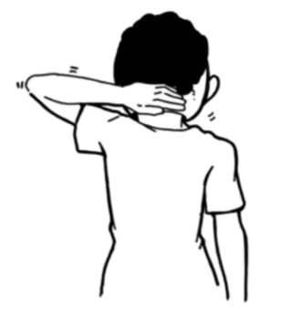 颈部放松,双手掌心搓热,然后一侧手掌放在后颈部来回摩擦颈部,保持5-8秒,然后再换另一侧手。