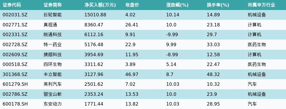 11月30日龙虎榜营业部净买入额前10详情见下表: