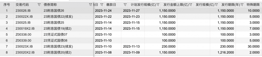 21世纪经济报道记者统计发现,仅11月份刨除特殊期限(即发行期限为整数年)的国债发行规模已经达到6246亿元。