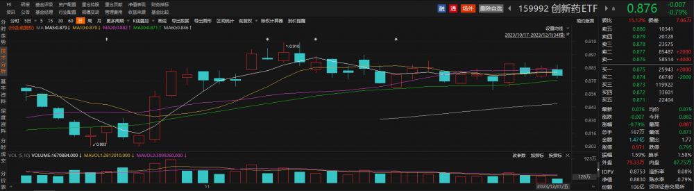 跟踪中证创新药产业指数的ETF中规模最大的创新药ETF(159992)盘中走低,交投持续活跃。截至发稿,该ETF下跌0.79%,溢折率为0.08%,成交金额达1.47亿元。该ETF连续2日获资金净流入,累计净流入额超7300万元。