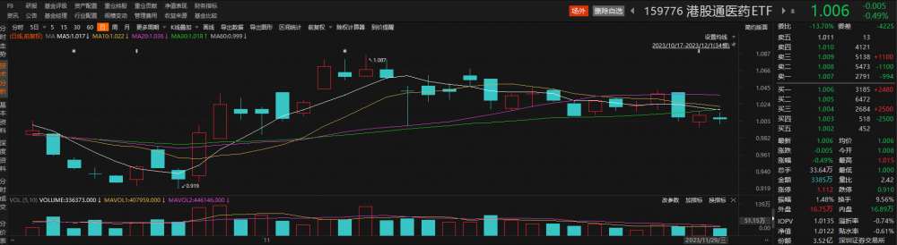 跟踪该指数的港股通医药ETF(159776)盘中走低,但盘中交投同样活跃。截至发稿,该ETF下跌0.49%,换手率近10%。