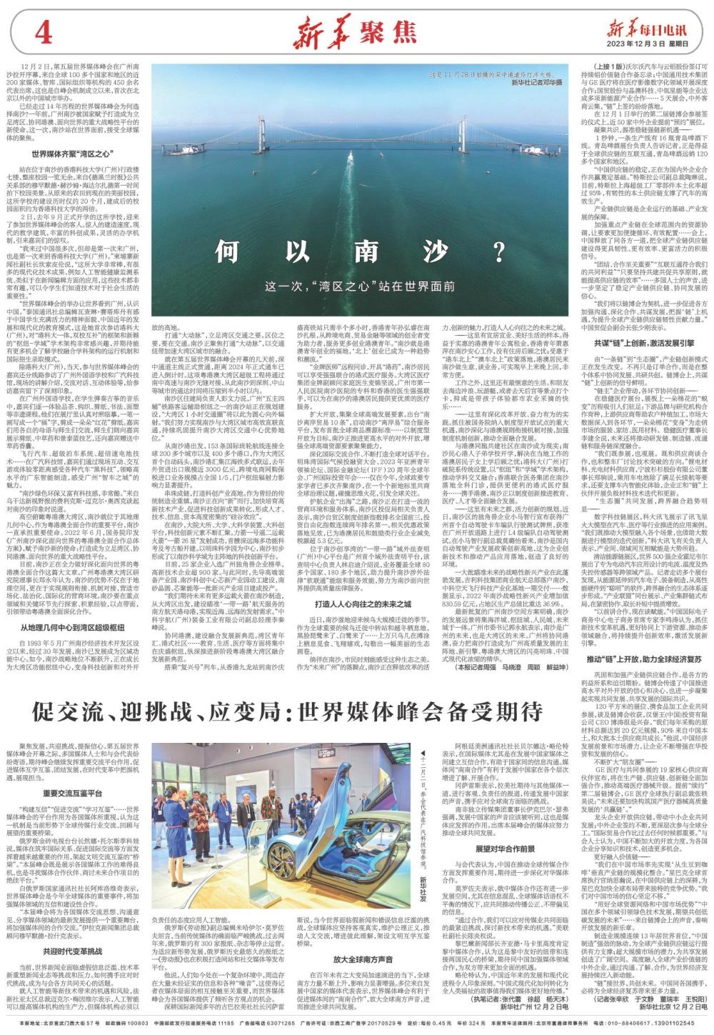 12月2日,第五届世界媒体峰会在广州南沙拉开序幕,来自全球100多个国家和地区的近200家媒体、智库、国际组织等机构的450余名代表出席。这也是自峰会机制成立以来,首次在北京以外的中国城市举办。