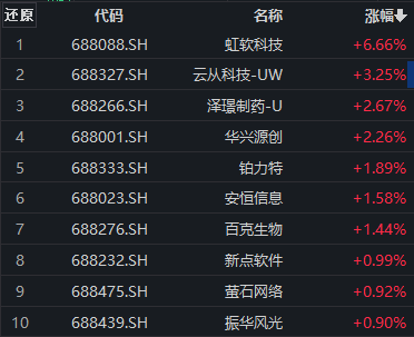 受大盘走低影响,科创100指数(000698)早盘下跌,成分股跌多涨少,但人工智能相关概念股涨幅居前。虹软科技涨超6%,云从科技-UW涨超3%,泽璟制药-U、华兴源创涨逾2%,铂力特、安恒信息、百克生物、新点软件、萤石网络、振华风光等跟涨。