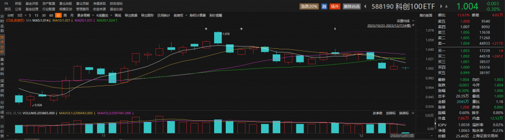 跟踪科创100指数的科创100ETF(588190)早盘小幅下跌,但盘中现溢价交易。截至发稿,该ETF下跌0.30%,溢折率为0.02%。