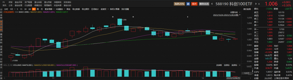 跟踪科创100指数的科创100ETF(588190)早盘飘红,盘中小幅溢价。截至发稿,该ETF上涨0.30%,溢折率为0.03%。值得注意的是,该ETF昨日获资金净流入超6300万元。