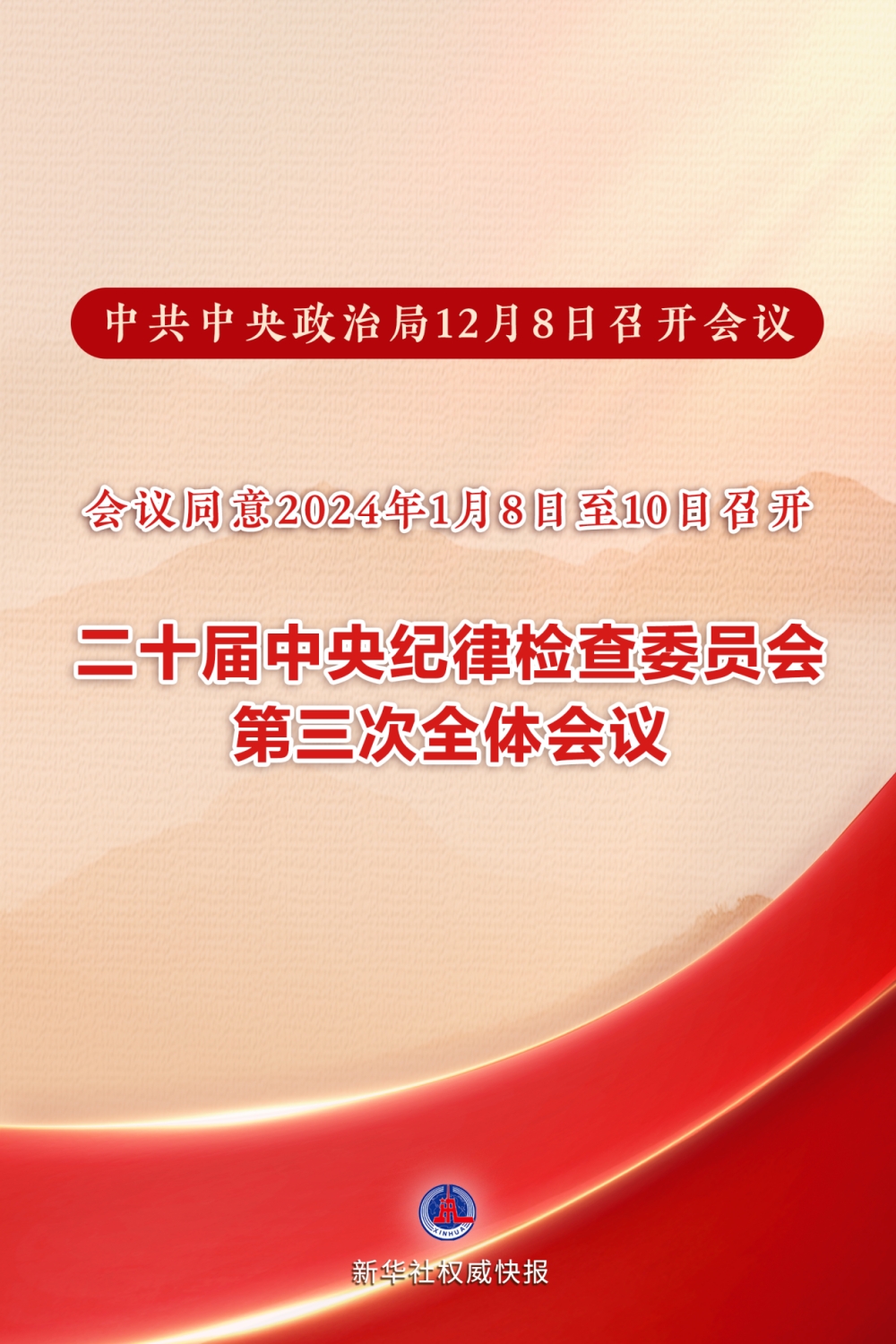 会议同意2024年1月8日至10日召开二十届中央纪律检查委员会第三次全体会议