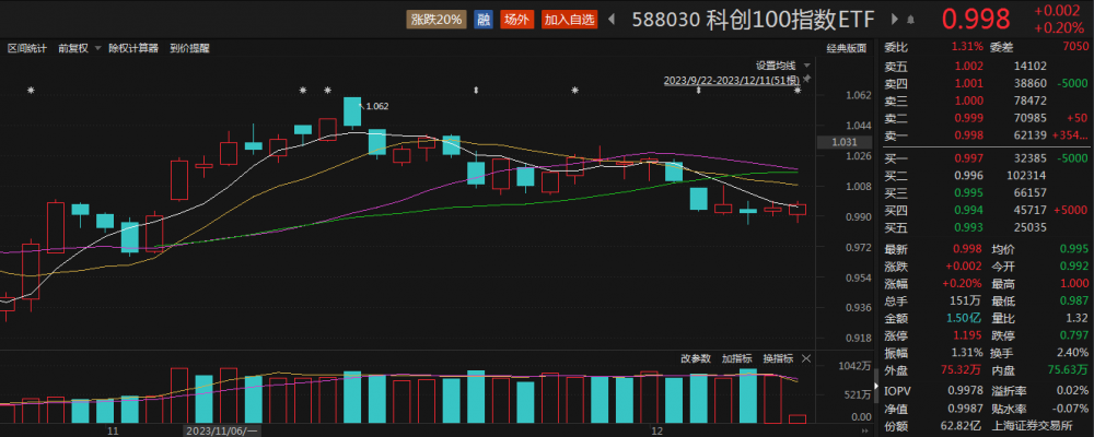 wind数据显示,科创100指数ETF(588030)12月8日单日获超1亿元资金净流入,份额增长至62.82亿份,规模62.74亿元,再创历史新高。