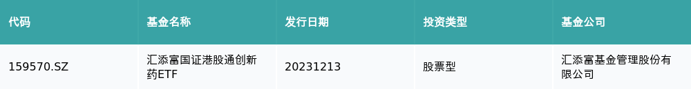 12月13日有1只新基金发行,为汇添富国证港股通创新药ETF,详情见下表: