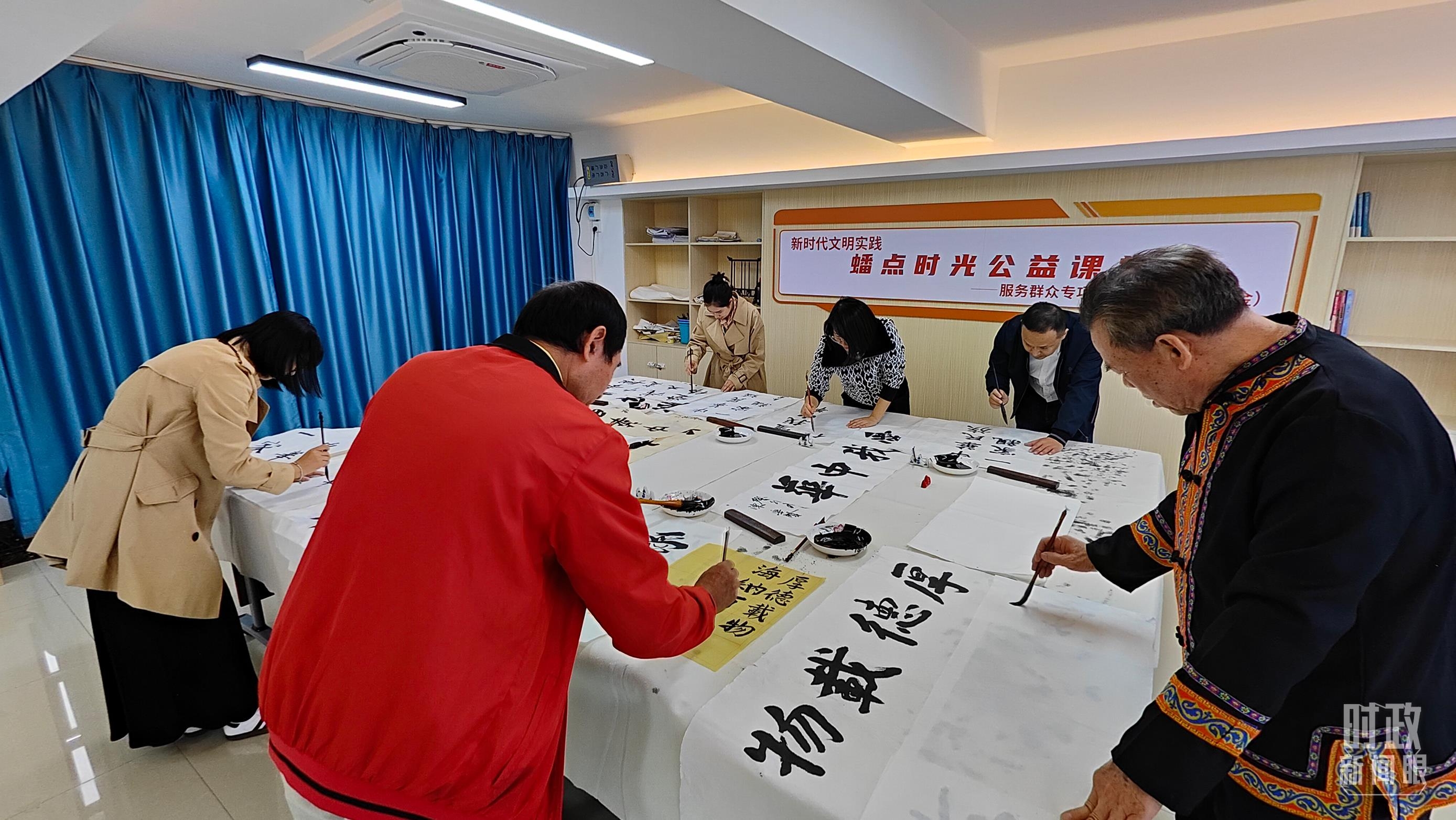 △蟠龙社区居民在练习书法。(总台央视记者杨立峰拍摄)