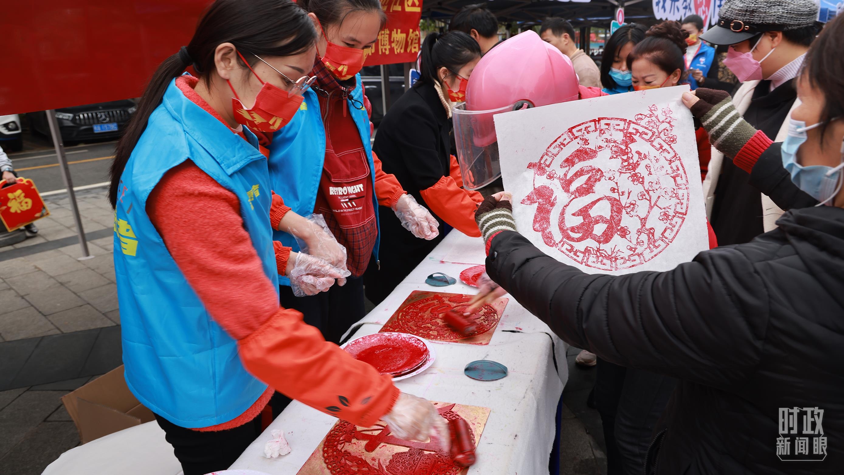 △蟠龙社区居民在社区活动上刻板画。