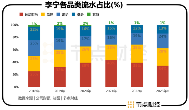 《节点财经》通过分析李宁历年的业务流水变化发现,“运动时尚板块的式微”或是关键。