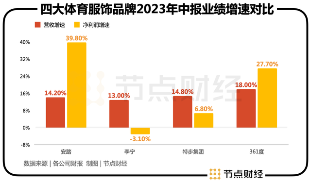 这一增速水平不仅较公司2022年同期的“10%-20%中段增长”放缓明显,而且也明显逊色于同行。三季度安踏主品牌零售流水同比高单位数(7%-9%)增长,特步主品牌取得高双位数(17%-19%)的同比增长,361度主品牌线下流水同比增长15%,电商业务同比增长30%。