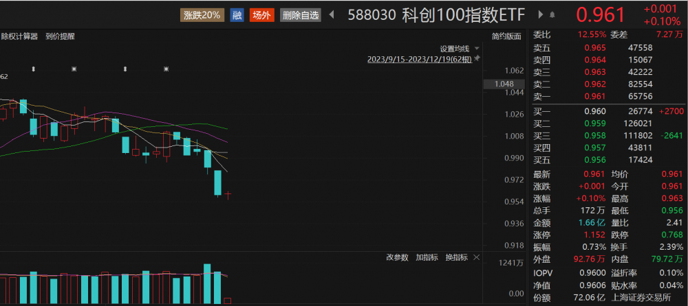 科创100指数ETF(588030)盘中震荡,现涨0.10%,成交额1.66亿元,盘中频现溢价交易。