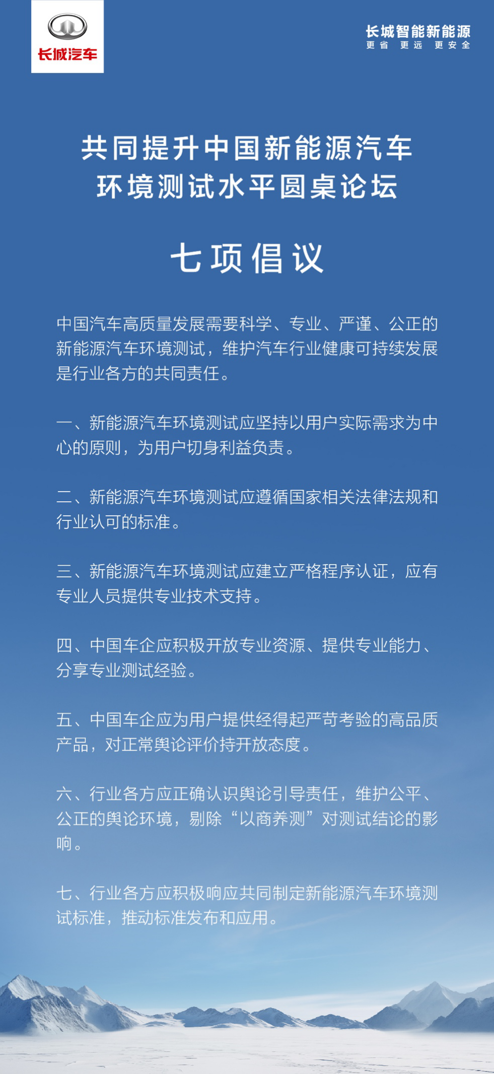 长城汽车向全行业开放中国新能源汽车环境测试能力,旨在推动中国新能源汽车更加科学、专业、严谨、公正的测试以及中国汽车行业健康可持续发展。