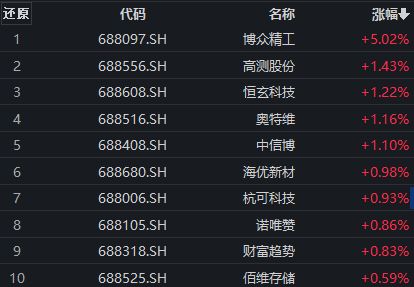 A股主要宽基指数早盘低开,随后窄幅震荡。截至发稿,科创100指数小幅下跌,成分股跌多涨少。上涨个股中,博众精工涨超5%,高测股份、恒玄科技、奥特维、中信博涨逾1%,海优新材、杭可科技、诺唯赞、财富趋势、佰维存储等小幅上涨。