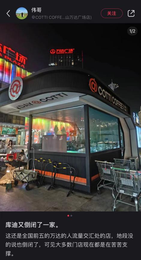 近期比较有代表性的案例是,某家位于全国前五万达的人流量交汇处的库迪门店也倒闭了。