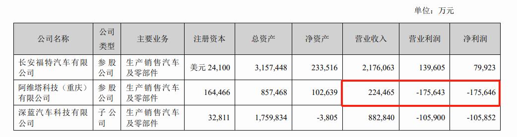 阿维塔2023H1业绩情况,图源长安汽车半年报