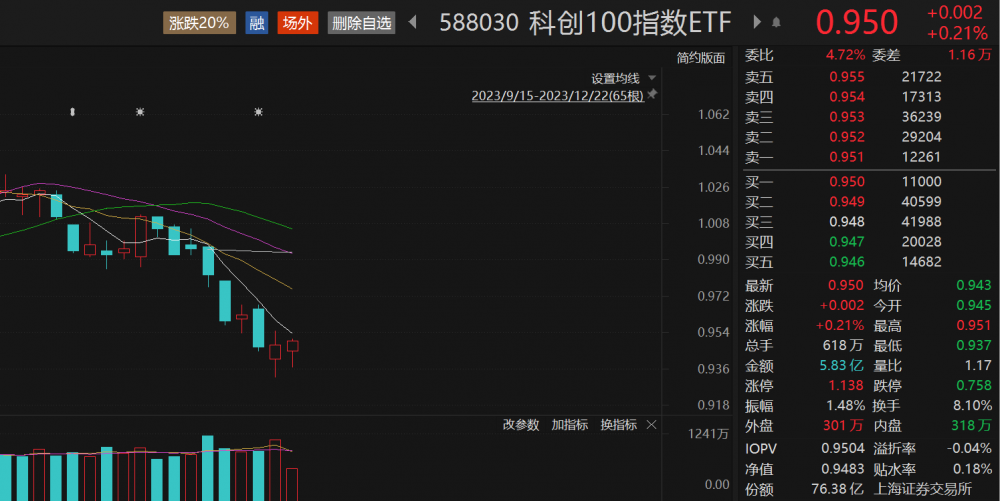 今年以来,A股市场震荡回调,ETF凭借灵活、透明、低成本特质逆势大热,受到国内外投资者青睐。据iFind数据,截至目前,ETF上市产品总数为893只,场内规模超过1.98万亿元,较年初增长0.5万亿元。以目前跟踪科创100(000698)的ETF——科创100指数ETF(588030)为例,该ETF份额、规模双双较9月15日上市首日增长超过200%,最新份额为76.38亿份,最新规模为72.43亿元,双双续创新高,且蝉联同指数产品第一。