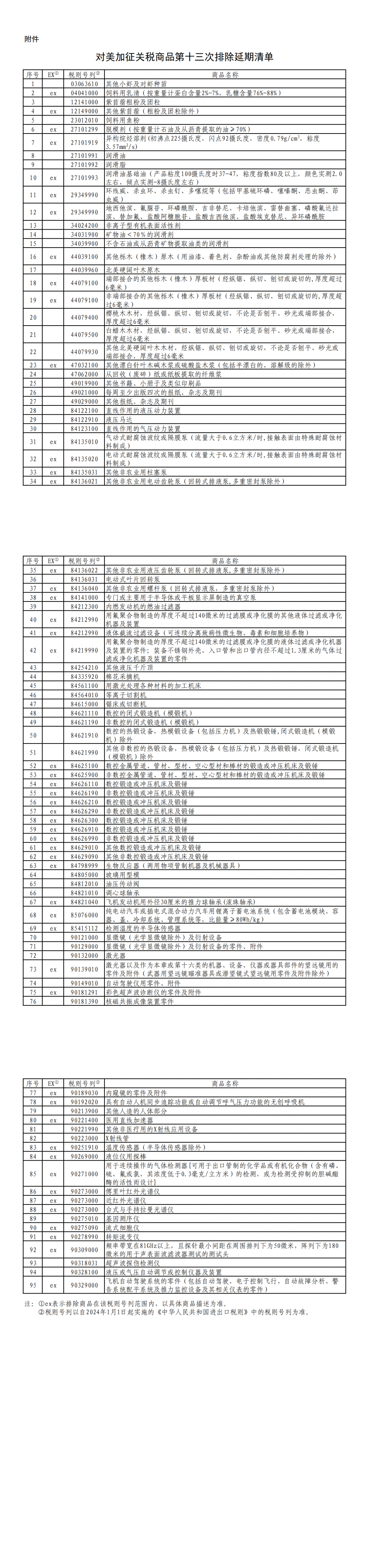 自2024年1月1日至2024年7月31日,对附件所列商品,继续不加征我为反制美301措施所加征的关税。