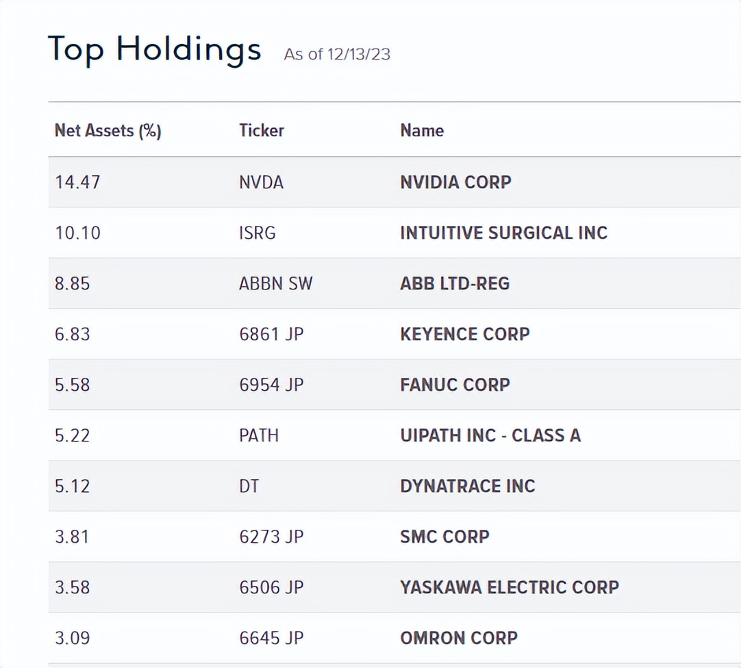 0.69% 的费用率具有竞争力,该基金最近出现复苏,并可能持续到 2024 年。ETF 领域的其他选择包括 Robo 全球机器人和自动化指数 ETF (ROBO)和 Roundhill 生成人工智能和技术 ETF (CHAT)。