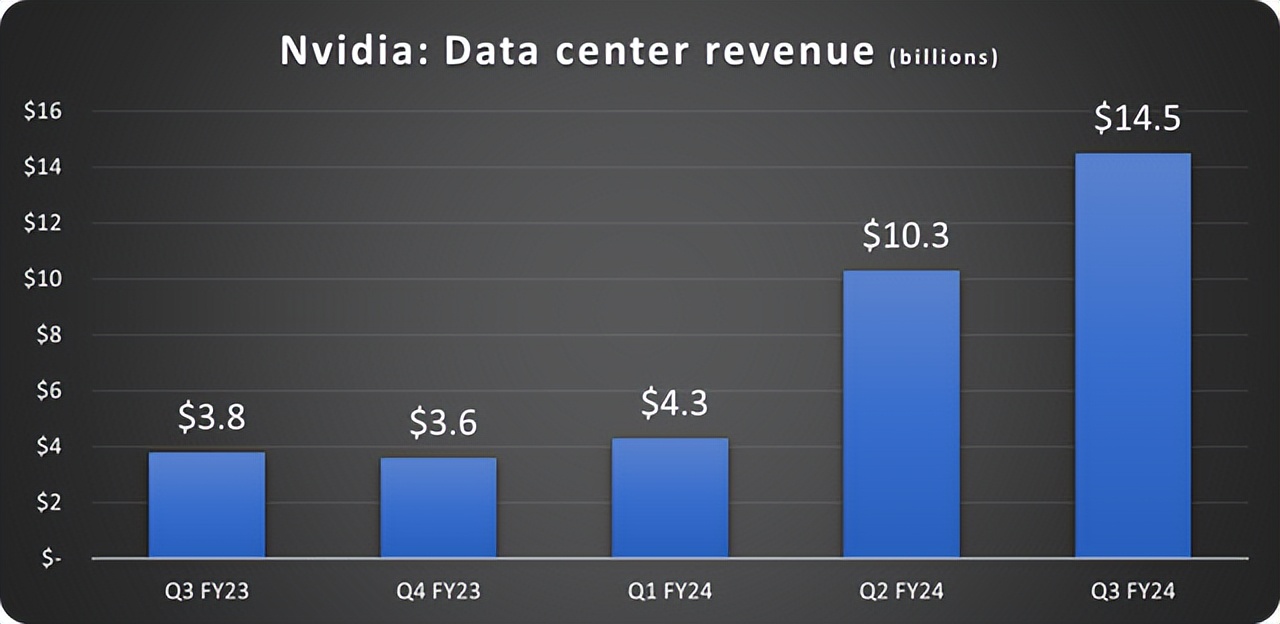 如上所述,数据中心收入是主要驱动力,上季度达到 145 亿美元,同比增长惊人的 279%。这一趋势仍然强劲,上个季度环比增长 41%,如下所示。