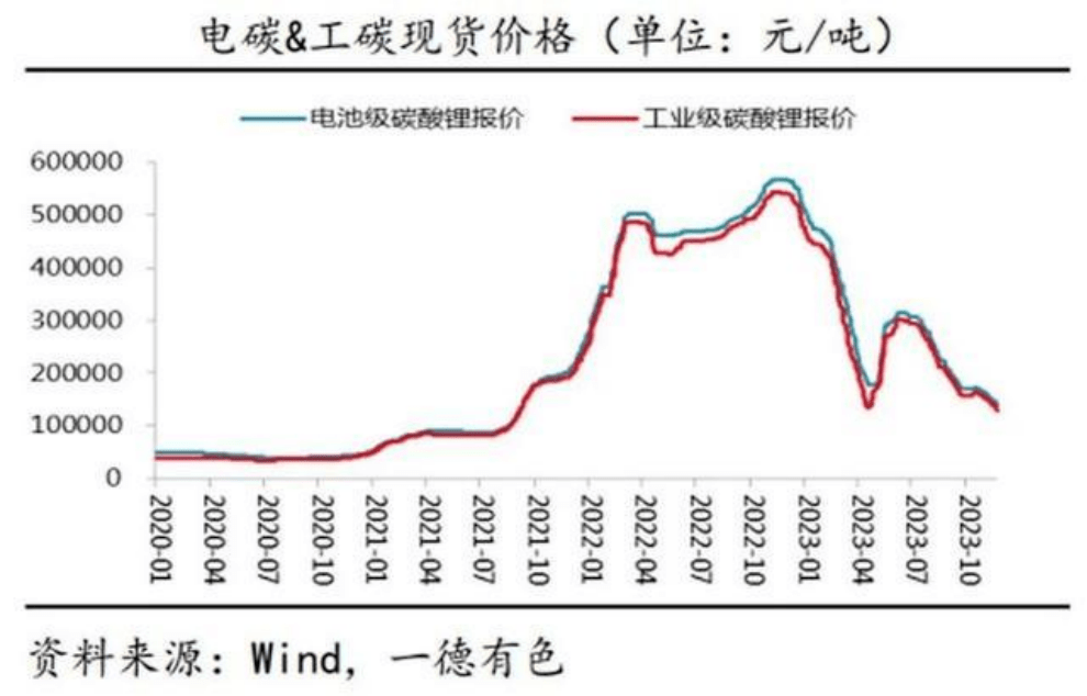 事实上,今年以来电池级碳酸锂的价格已暴跌八成,从年初约50万元/吨的高位下行至年底10万元/吨左右。有资深矿端业内人士表示,当前的碳酸锂价格并未反映出市场真实的供需关系,更多是因为新能源车产业对市场需求预期的崩塌,带动各环节企业低价去库存。
