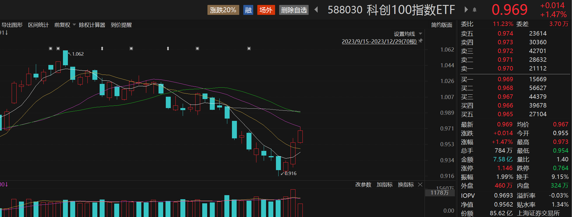 规模最大的跟踪科创100(000698)的ETF——科创100指数ETF(588030)连续多日放量上涨,早盘继续走高,午间收涨1.47%,半日成交额7.58亿元,涨幅、成交额均领先同指数其他产品。