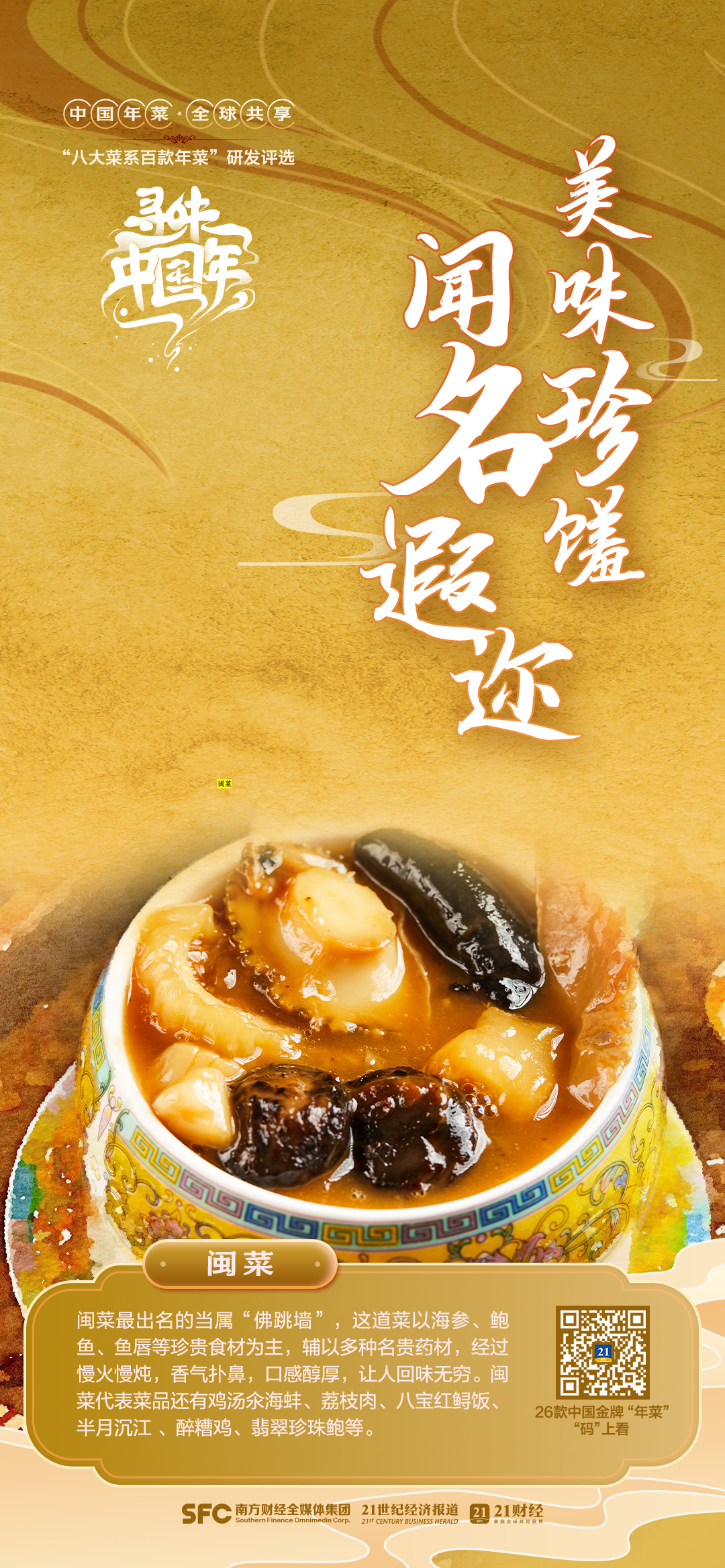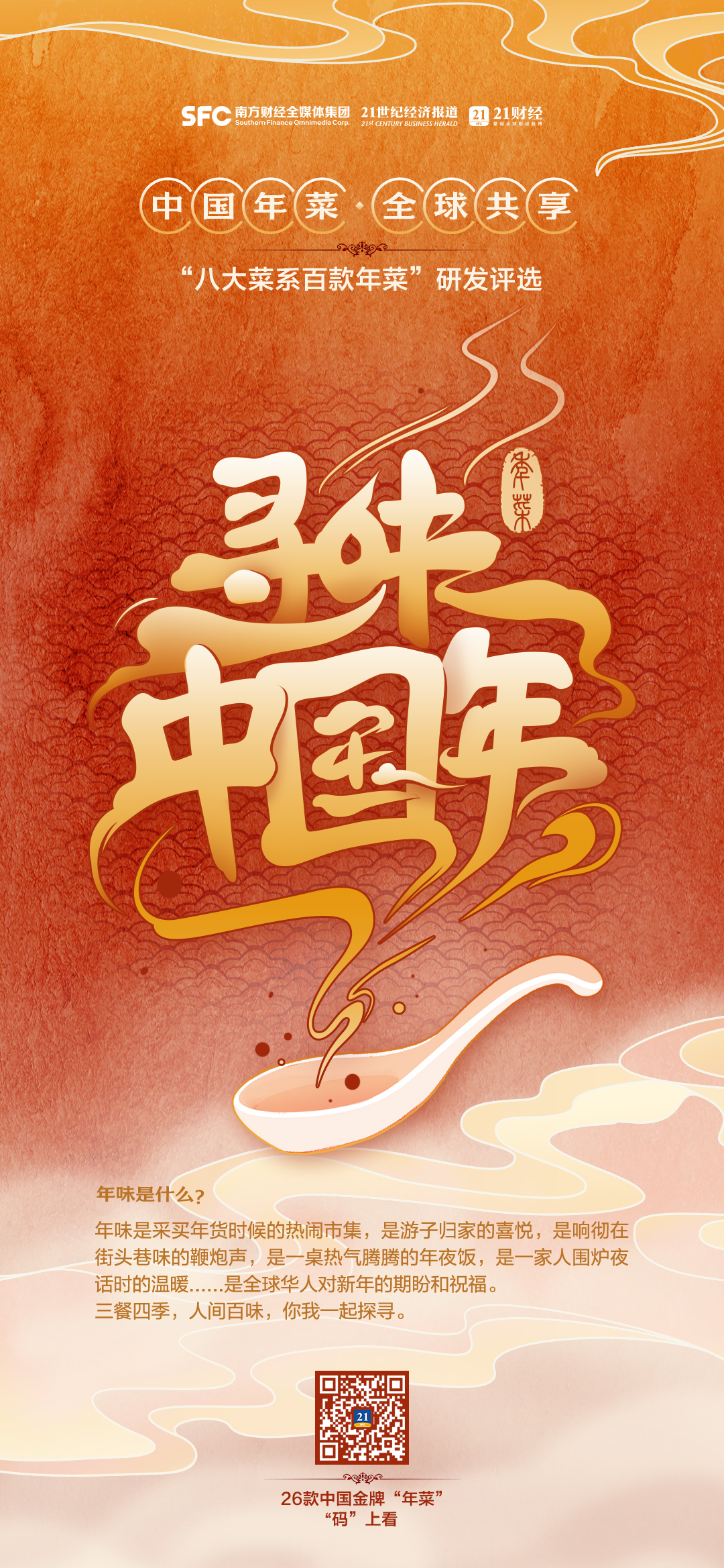 在新年的第一天,南方财经推出“链”上预制菜全新栏目,并精心制作“寻味中国年”之八大菜系“年菜”创意海报,让我们共同品味美食,并期待用“八大菜系”打造八大市场、开发八地资源、培育八方主体、融通八地文化,一起迎接新一年的到来。
