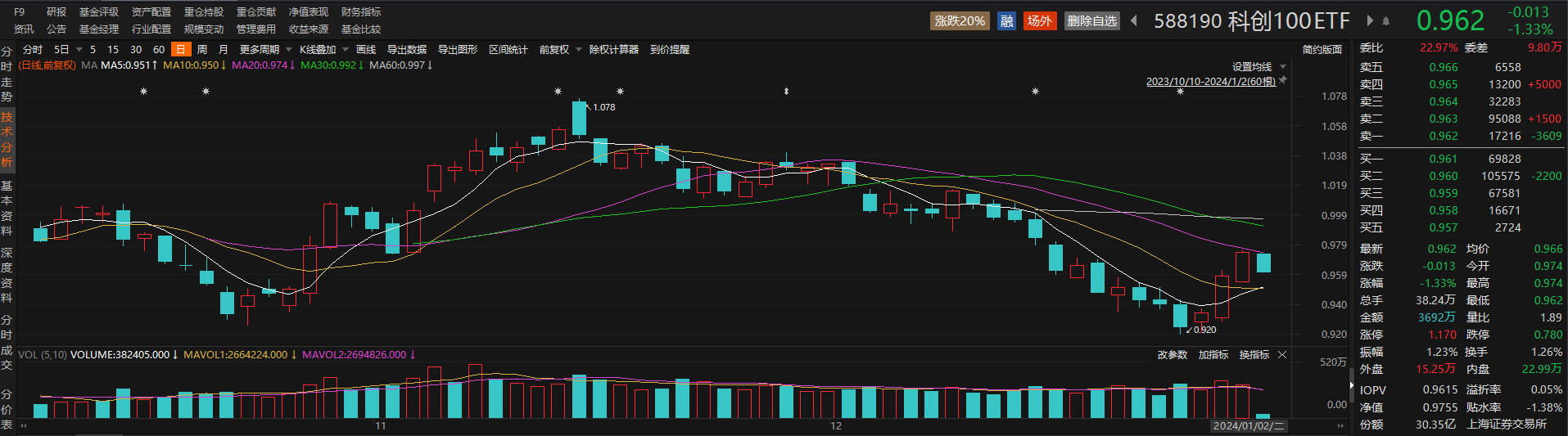 跟踪科创100指数的科创100ETF(588190)早盘调整,但盘中现溢价交易。截至发稿,该ETF下跌1.33%,溢折率为0.05%,成交金额近3700万元。