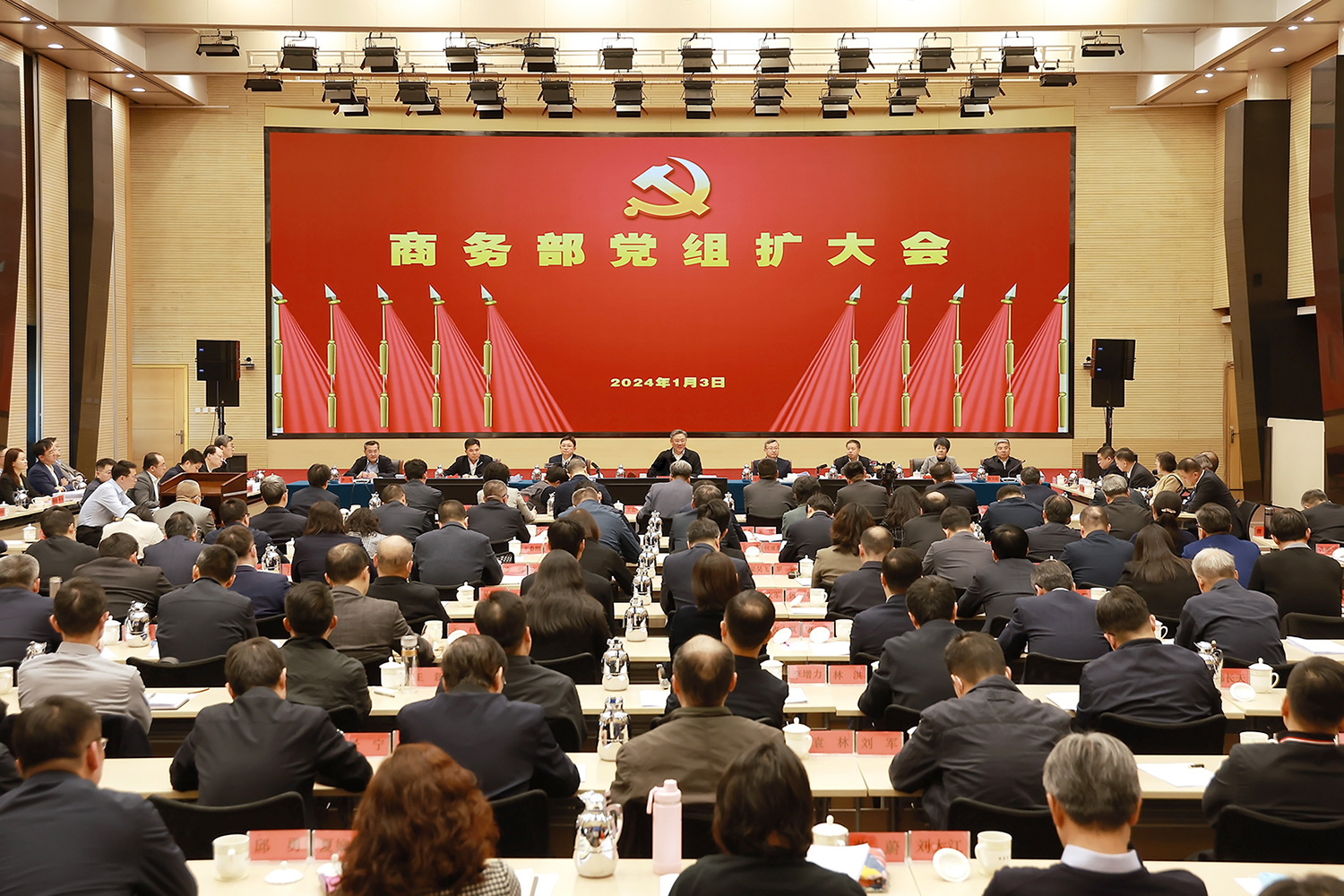 1月3日,商务部党组扩大会议在京召开。会议主要任务是:以习近平新时代中国特色社会主义思想为指导,深入学习贯彻党的二十大和二十届二中全会精神,落实中央经济工作会议和中央外事工作会议部署,巩固拓展主题教育成果,立足商务工作“三个重要”定位,总结2023年工作,研究部署2024年工作,以商务高质量发展更好服务中国式现代化。商务部党组书记、部长王文涛主持会议并作总结讲话,部党组成员出席并发言。
