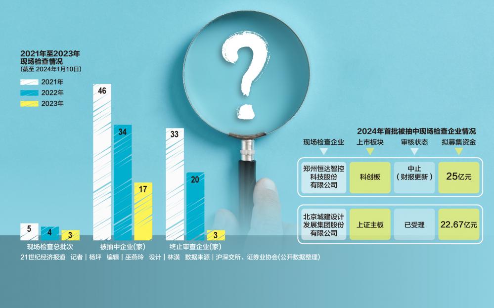近日,中国证券业协会官网发布《关于2024年第一批首发申请企业现场检查抽查名单的公告》,郑州恒达智控科技股份有限公司(简称“恒达智控”)、北京城建设计发展集团股份有限公司(简称“城建设计”)两家企业被抽中现场检查。