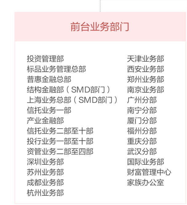 而从五矿信托官网披露的信息来看,该公司的前台业务部门并不止设在6个城市,而是遍及深圳、苏州、成都、杭州、天津、西安、郑州、南京、广州、南宁等10余个城市。