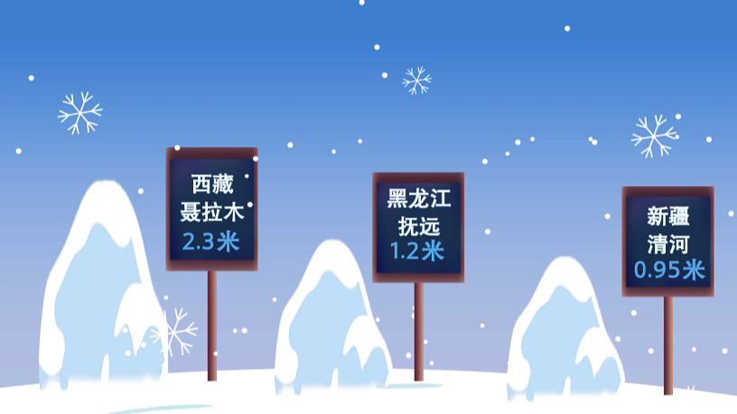 光看降雪日数还不够,还得看这雪存不存得住,西藏的聂拉木堪称中国积雪之最,它的历史最大积雪深度曾达到2.3米,此外黑龙江抚远、新疆清河等站点,最大积雪也曾达一米左右。