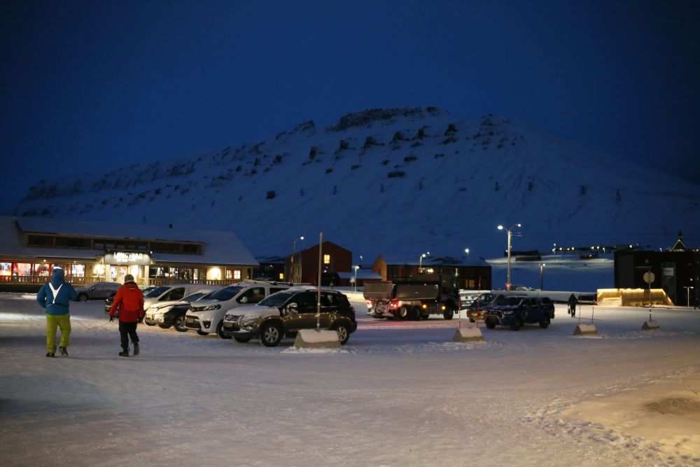 这是2023年11月14日在挪威斯瓦尔巴群岛首府朗伊尔城拍摄的一个停车场。新华社记者张玉亮摄