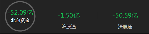 北向资金全天净卖出52.09亿元,连续6日净卖出;其中沪股通净卖出1.5亿元,深股通净卖出50.59亿元。本周北向资金累计减仓近235亿元。