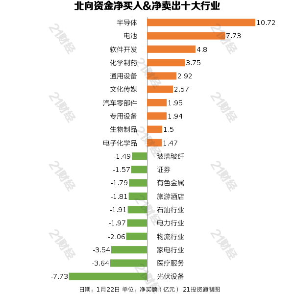 据21投资通智能监测,1月22日,北向资金净买入10.47亿元,其中沪股通净买入7.39亿元,深股通净买入3.09亿元。