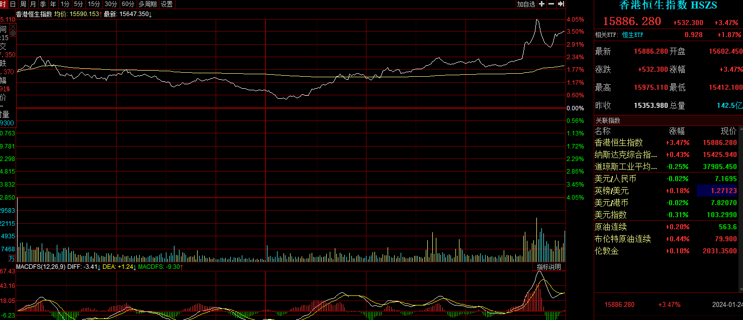 在A股收市之后,香港恒生指数直线暴利拉升,富时A50期指也明显出现火箭上升态势,预示着周四的市场会有很好的机会。