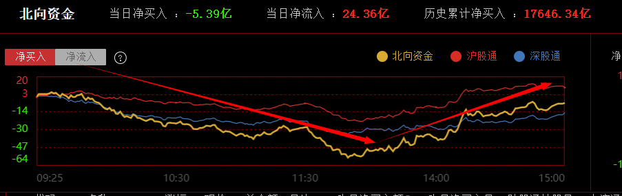 北向资金从最多减仓55个亿,到减仓5个亿,也就是下午北向资金回流了50个亿,对于市场是有利的。