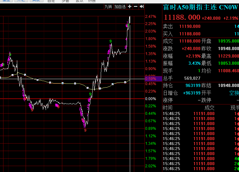 多元金融,保险,证券,上海国企改革板块走强,自由贸易港,房地产开发,中字头走强,这些都是蓝筹板块标的,对于指数的上攻有很好的机会,而且也让富时A50指数期货有明显的直线拉升。