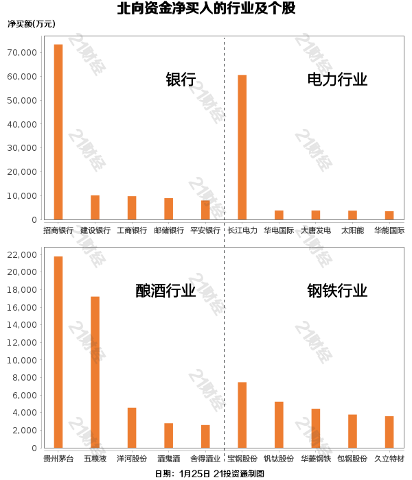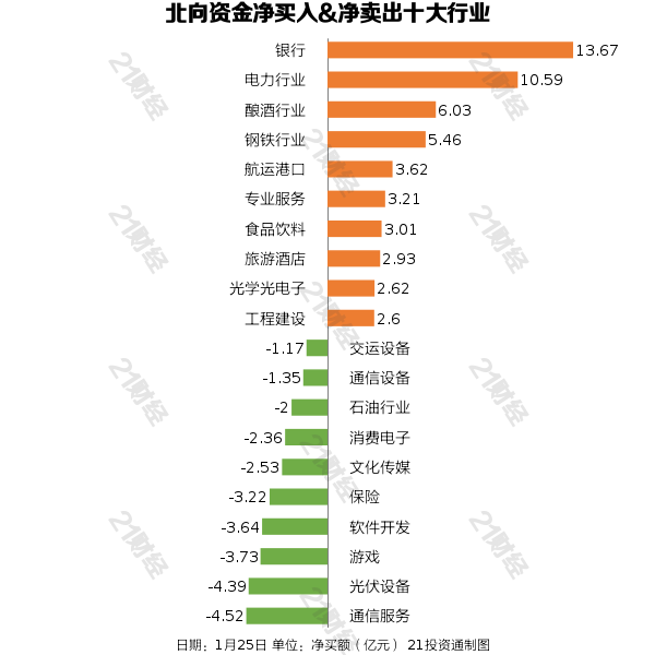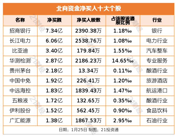 据21投资通智能监测,1月25日,北向资金净买入62.34亿元,其中沪股通净买入48.34亿元,深股通净买入14.59亿元。