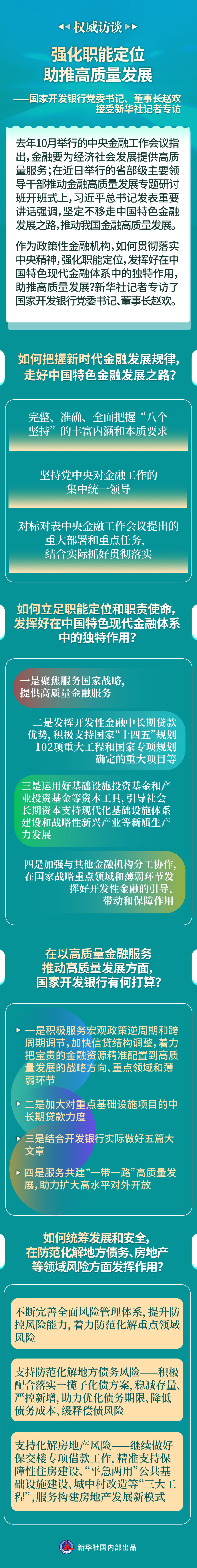 原标题:权威访谈|强化职能定位 助推高质量发展——国家开发银行党委书记、董事长赵欢接受新华社记者专访