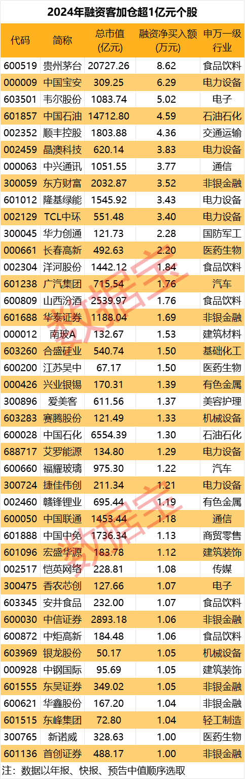 两市融资余额整体下行,但仍有部分个股逆势获得融资客加仓。数据宝统计,截至1月26日,42股的融资资金净流入额超过1亿元。其中,贵州茅台、中国宝安、韦尔股份拿下三强,融资净买入额依次为8.62亿元、6.29亿元、5.02亿元。