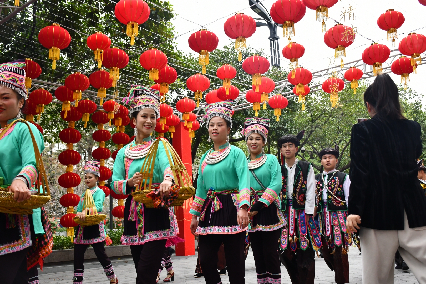 四只佛山醒狮领头,50余名贵州黔东南黎平侗族阿哥阿妹盛装出席,一同巡游,百行百业百人表演“科目三”快闪……2月5日,2024禅城区文华迎春中心花市嘉年华(简称“文华花市”)启动,吸引行花街人数超五万人次,现场人头攒动,热闹非凡。